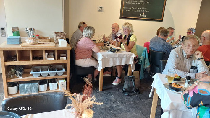 We eten hier in een aparte zaal en verhuizen voor de bridge drive naar het 1ste verdiep. Verwelkoming van de niet fietsers voor ronde 1 , 2 en 3